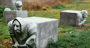 Artist Duane Linklater initiated the Don River Valley Park Art Program with a striking installation of cast concrete gargoyles on the Lower Don Trail.