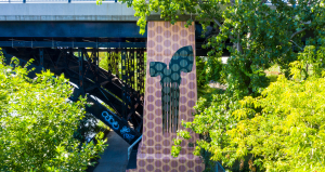 A mural installation at Dundas Street Bridge by Beth Stuart.