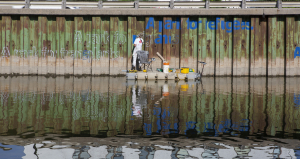Will Kwan's text installation stretches the lengths of the industral retaining walls of the Don River.